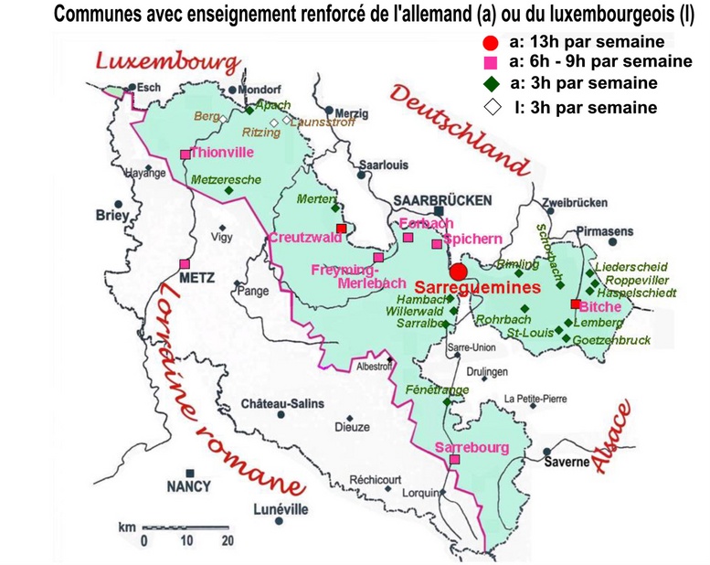 Il est clair toutefois que la situation idéale serait des classes maternelles en dialecte suivies d'un enseignement primaire et secondaire bilingue français-allemand et à défaut les classes ABCM donnent une place au dialecte par le biais d'activités éducatives.